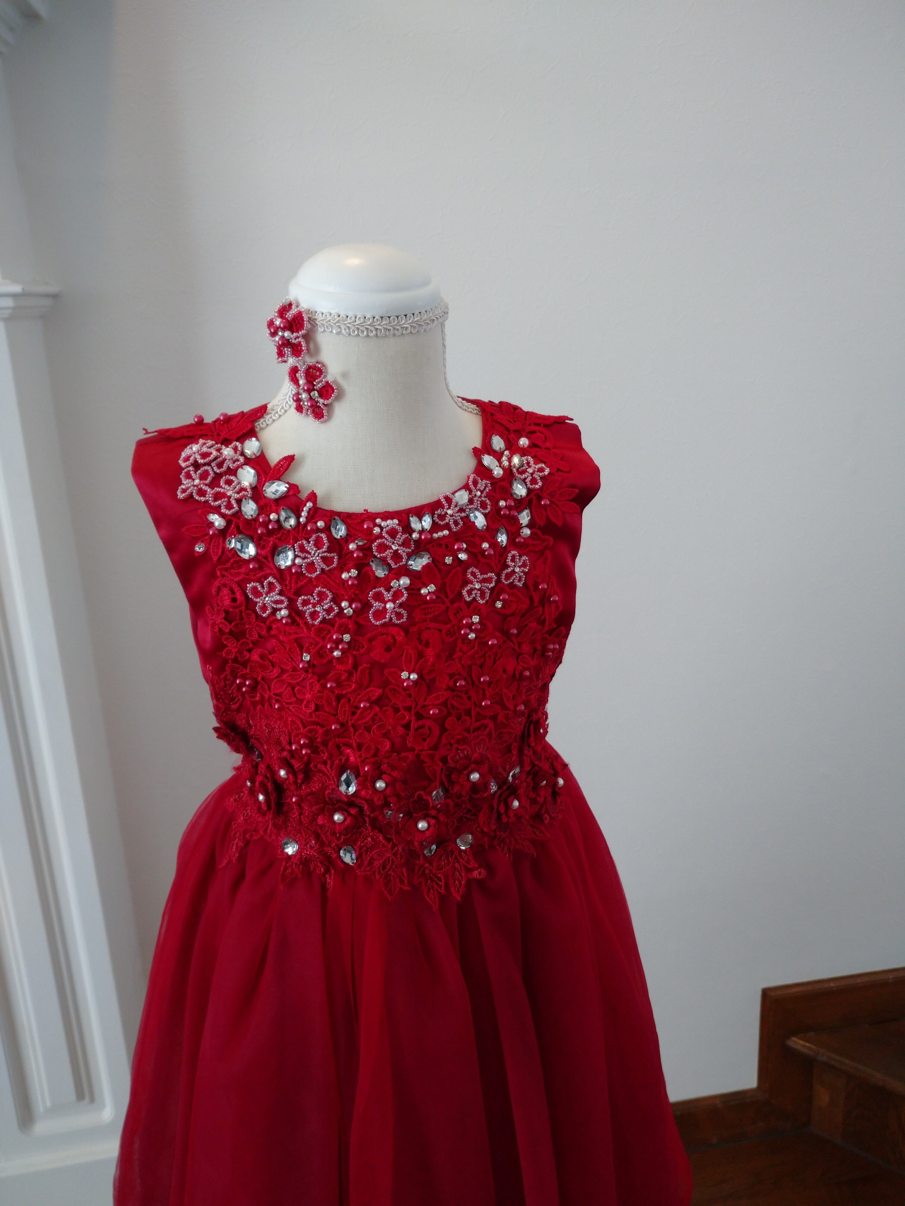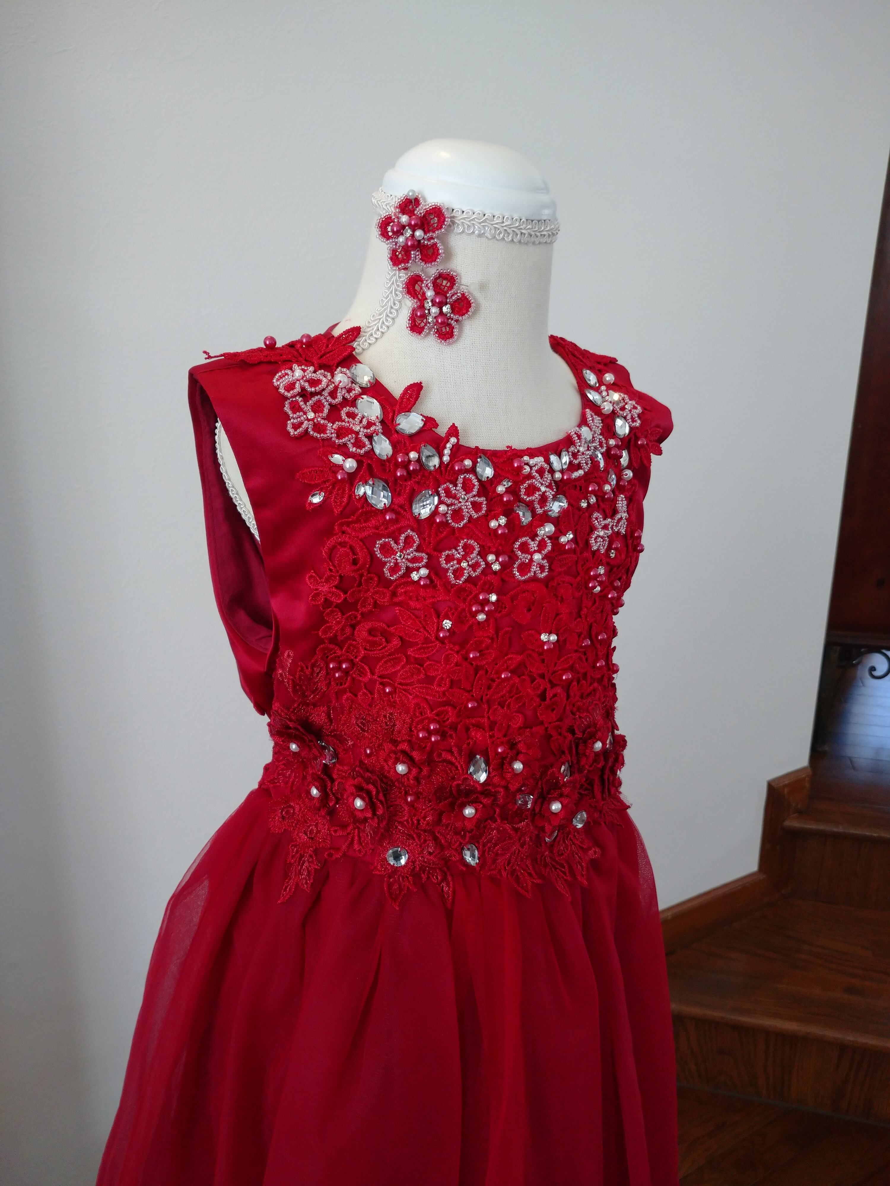 130cm 赤 フラワービジュードレス