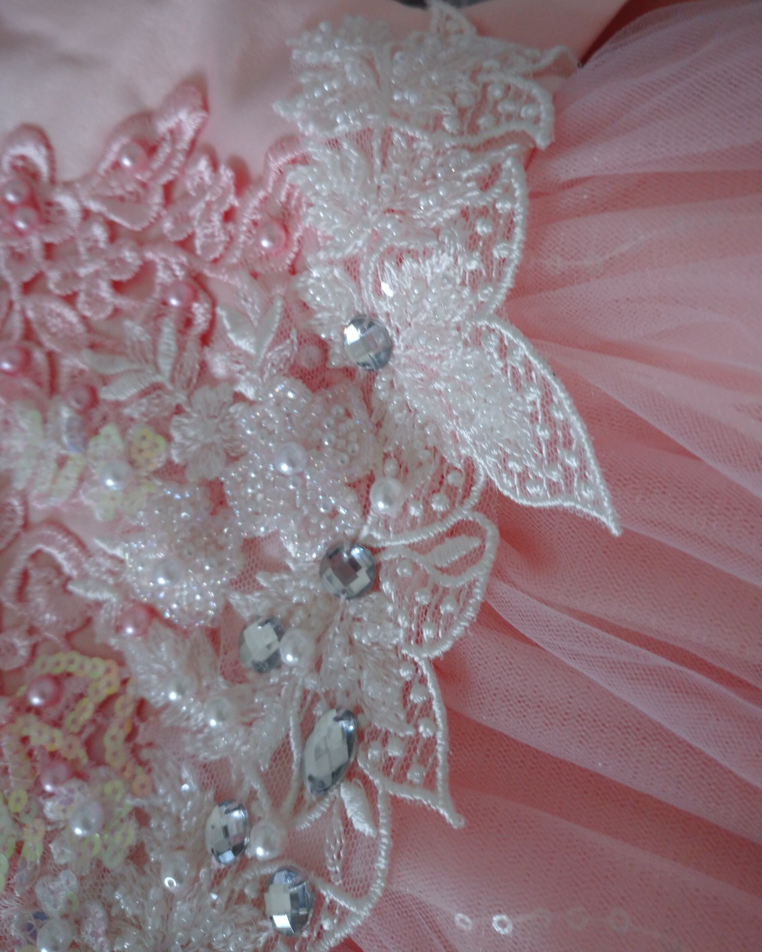 甘く華やかなフラワープリンセスドレスが登場しました!上品なピンクとホワイトの配色に、花がデザインされ、まるで花園を散歩しているかのような、夢見心地になるドレスです。